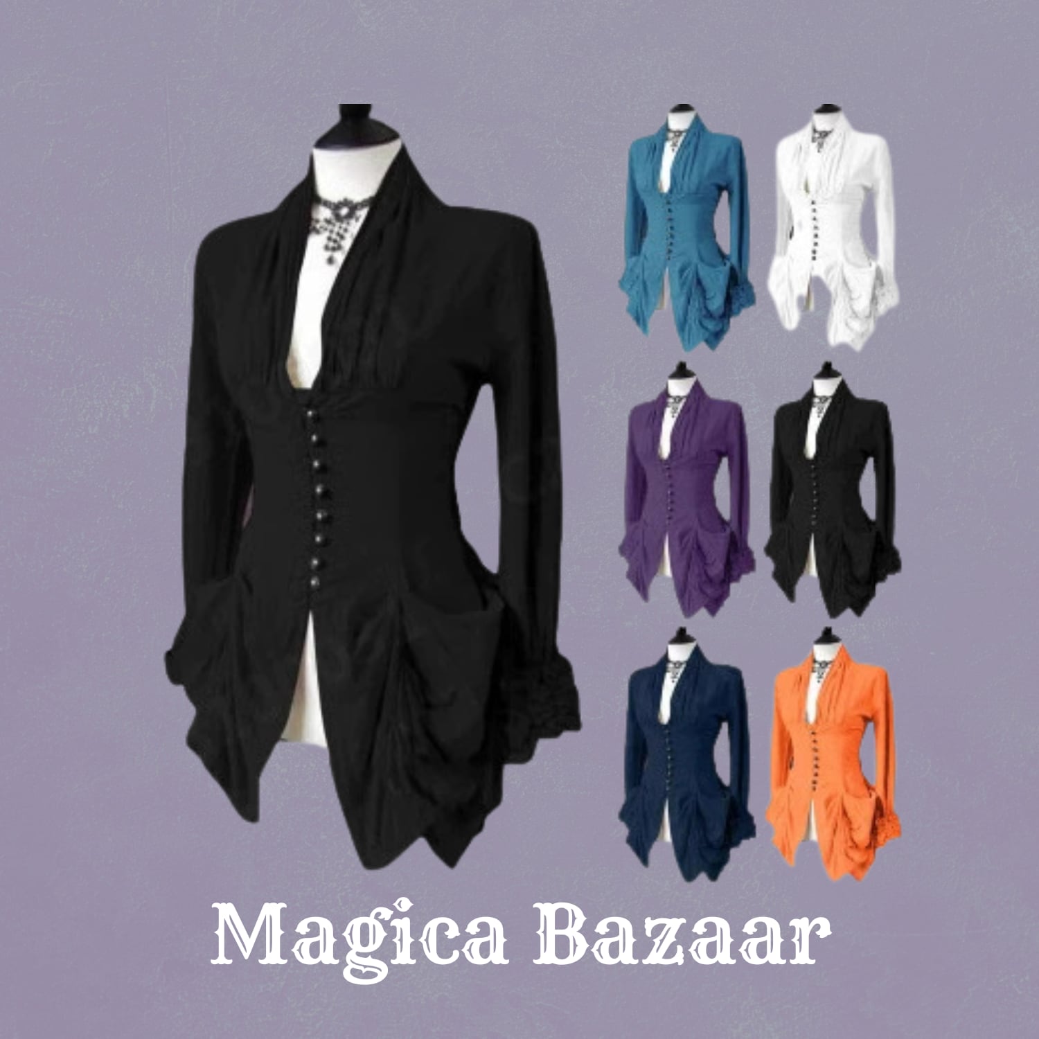 ヴァーダント・グレース クラシカルブラウス M25042 【サイズ】※海外製品につき3-4センチ程度誤差がある場合がございます。 Sサイズ バスト約92㎝ 袖丈約60㎝ 着丈約82㎝ Mサイズ バスト約98㎝ 袖丈約61.5㎝ 着丈約83.5㎝ Lサイズ バスト約104㎝ 袖丈約63㎝ 着丈約85㎝ XLサイズ バスト約110㎝ 袖丈約64.5㎝ 着丈約86.5㎝ 2XLサイズ バスト約116㎝ 袖丈約66㎝ 着丈約88㎝ 3XLサイズ バスト約122㎝ 袖丈約67.5㎝ 着丈約89.5㎝ 【素材】 ポリエステル 【重量】 330g 【カラー】 Black White Orange Purple Navy blue Malachite Green 不定期でクーポン配布♪奇妙な洋装雑貨店 Magica Bazaar インスタグラム @magica_bazaar Follow me♡ https://www.instagram.com/magica_bazaar/ ↓ファンタジーと現実が混ざり合った不思議なアイテムをもっと見る https://www.magica-bazaar.com/ 【お届けについて】 こちらの商品は海外店舗より直接発送となる為、(一部国内発送あり) ご入金から2−4週間前後で発送致します。 (倉庫の都合により、4−6週間かかる場合もございます。) ◼️注意事項 ・タイミングによっては 商品在庫切れにより 注文キャンセルとさせていただく恐れもございますので、予めご了承くださいませ。 ※製造過程の中で匂いが強く出やすいものもございます。着用前に一度お洗濯することをオススメしています。 ・こちらは輸入品となります。日本製とは検品基準が異なる為、新品未使用品でもごくわずかな傷やほつれ等がある場合もございます。 ・仕入れ工場を変えることがあるため、記載サイズと若干異なる場合がございます。 ・商品の色味は、お手持ちのスマートフォンの画面によって実物と若干異なる場合がございます。 ・イメージ違いやサイズ交換等、お客さまご都合による交換、返品は対応出来かねます。 ・著しく縮む恐れがありますのでタンブラー乾燥はお避け下さい。 ———————————— ご購入前にこちらをお読みください →https://www.magica-bazaar.com/blog/2021/09/29/005357 ———————————— お取り寄せまでに少々お時間を頂戴いたしますので、皆様にご安心してご利用いただけるように 誠心誠意対応させていただきます。ご質問などはお気軽に♡