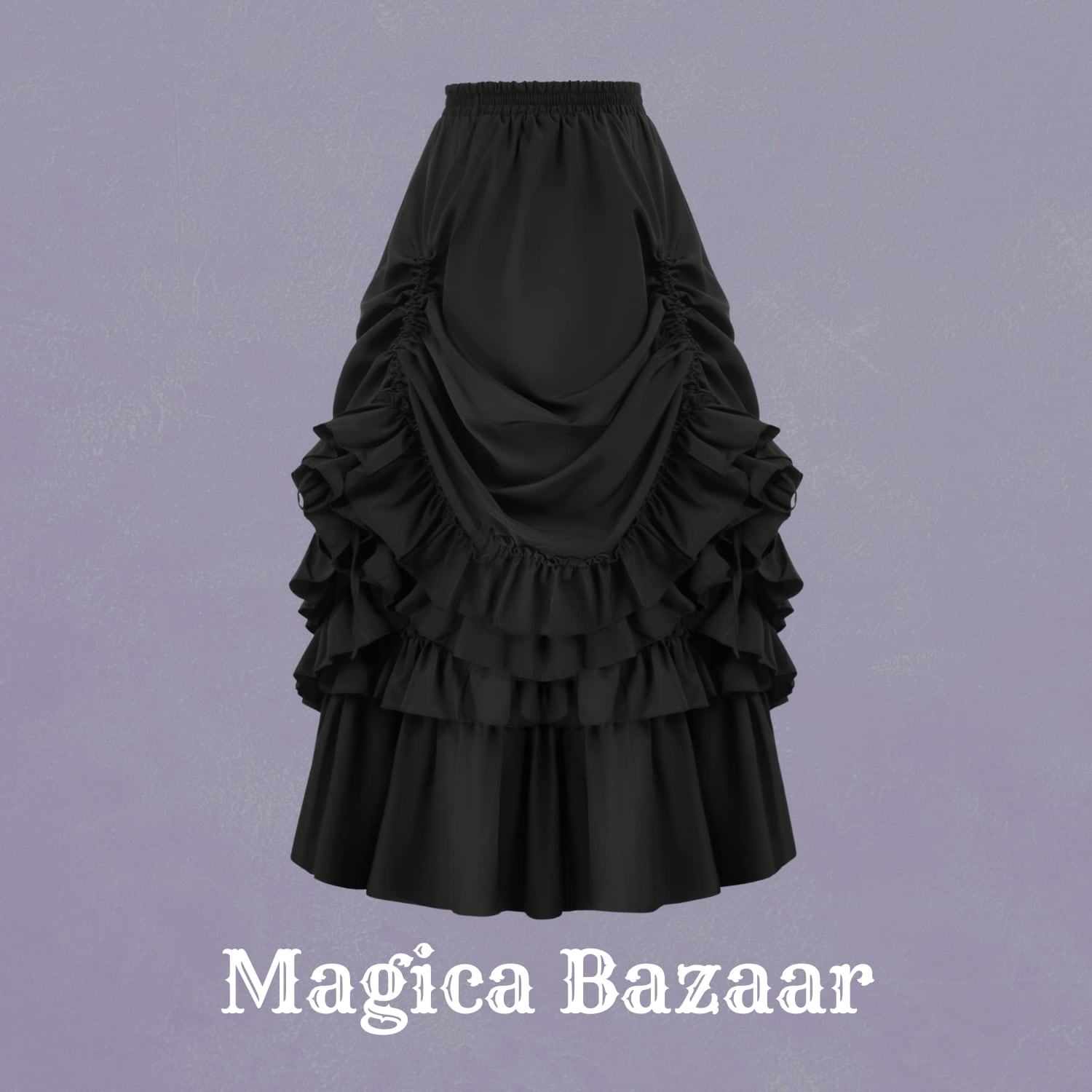 ノクターナル・エレガンス フリルスカート M25049 クラシカルなデザインのフリルスカート スチームパンクファッションにも 【サイズ】※海外製品につき3-4センチ程度誤差がある場合がございます。 Sサイズ ウエスト約56-94㎝ 裾まわり約251㎝ 着丈約84㎝ Mサイズ ウエスト約60-98㎝ 裾まわり約256㎝ 着丈約85㎝ Lサイズ ウエスト約64-102㎝ 裾まわり約261㎝ 着丈約86㎝ XLサイズ ウエスト約68-106㎝ 裾まわり約266㎝ 着丈約87㎝ 2XLサイズ ウエスト約72-110㎝ 裾まわり約271㎝ 着丈約88㎝ 【素材】 ポリエステル 【重量】 478g 【カラー】 Black Green Brown White 不定期でクーポン配布♪奇妙な洋装雑貨店 Magica Bazaar インスタグラム @magica_bazaar Follow me♡ https://www.instagram.com/magica_bazaar/ ↓ファンタジーと現実が混ざり合った不思議なアイテムをもっと見る https://www.magica-bazaar.com/ 【お届けについて】 こちらの商品は海外店舗より直接発送となる為、(一部国内発送あり) ご入金から2−4週間前後で発送致します。 (倉庫の都合により、4−6週間かかる場合もございます。) ◼️注意事項 ・タイミングによっては 商品在庫切れにより 注文キャンセルとさせていただく恐れもございますので、予めご了承くださいませ。 ※製造過程の中で匂いが強く出やすいものもございます。 着用前に一度お洗濯することをオススメしています。 ・こちらは輸入品となります。日本製とは検品基準が異なる為、新品未使用品でもごくわずかな傷やほつれ等がある場合もございます。 ・仕入れ工場を変えることがあるため、記載サイズと若干異なる場合がございます。 ・商品の色味は、お手持ちのスマートフォンの画面によって実物と若干異なる場合がございます。 ・イメージ違いやサイズ交換等、お客さまご都合による交換、返品は対応出来かねます。 ・著しく縮む恐れがありますのでタンブラー乾燥はお避け下さい。 ———————————— ご購入前にこちらをお読みください →https://www.magica-bazaar.com/blog/2021/09/29/005357 ———————————— お取り寄せまでに少々お時間を頂戴いたしますので、皆様にご安心してご利用いただけるように 誠心誠意対応させていただきます。ご質問などはお気軽に♡