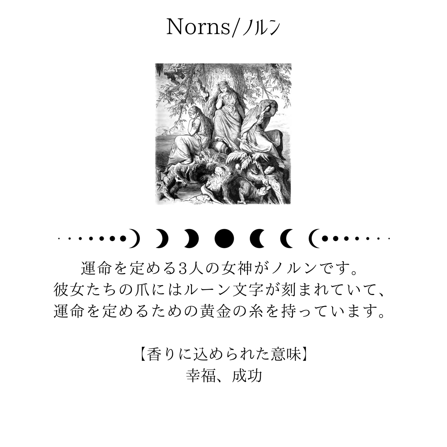 北欧神話の神々、女神たちの名前にちなんで名づけられており、キャンドルの色も香り