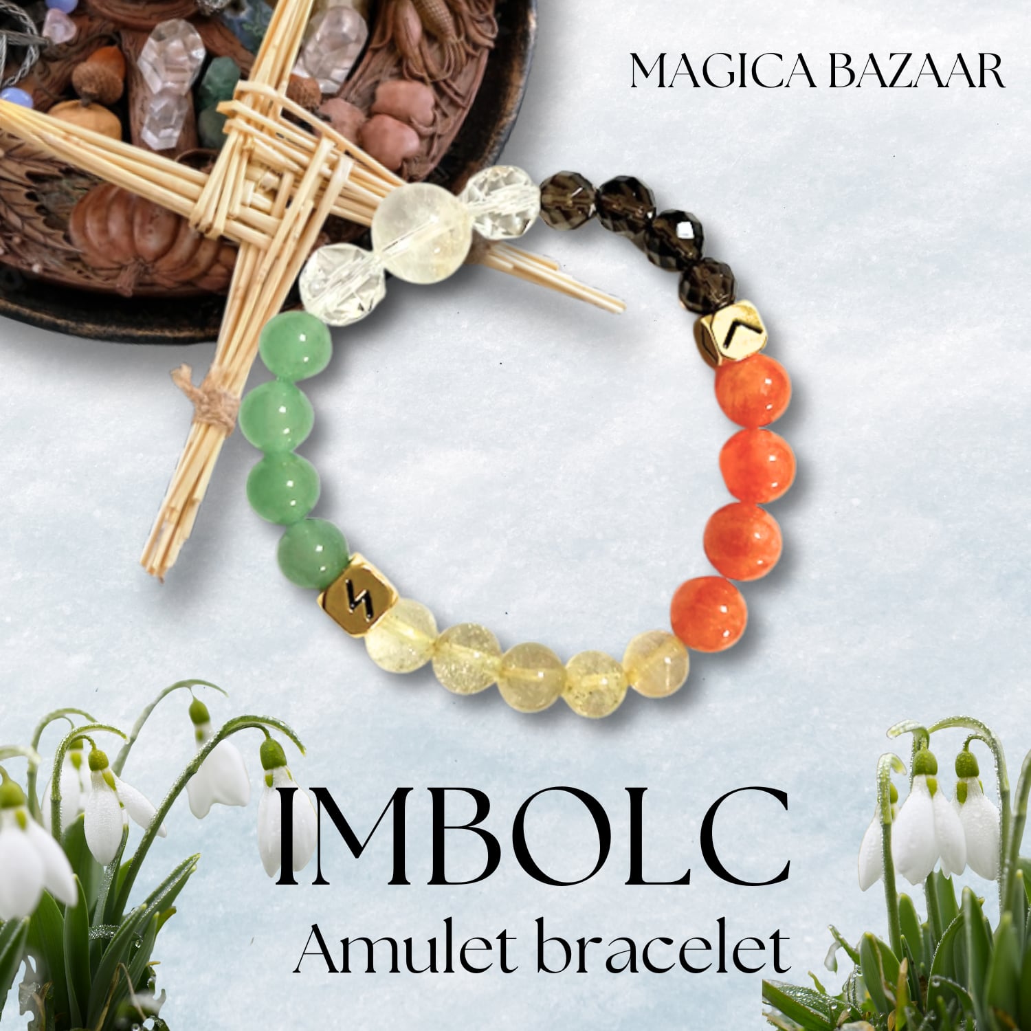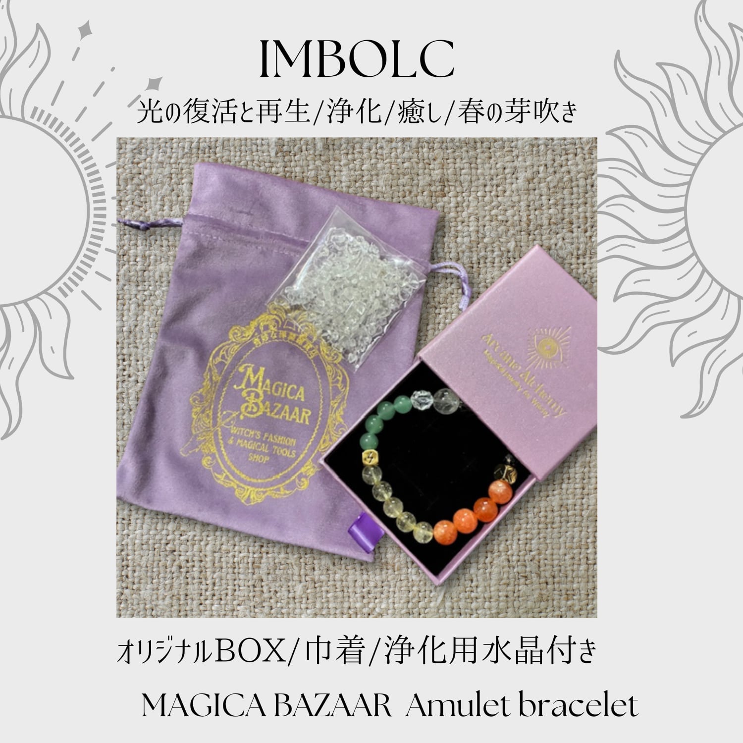 Wheel of the yearのインボルクをモチーフにしたオリジナルの天然石のブレスレットです。