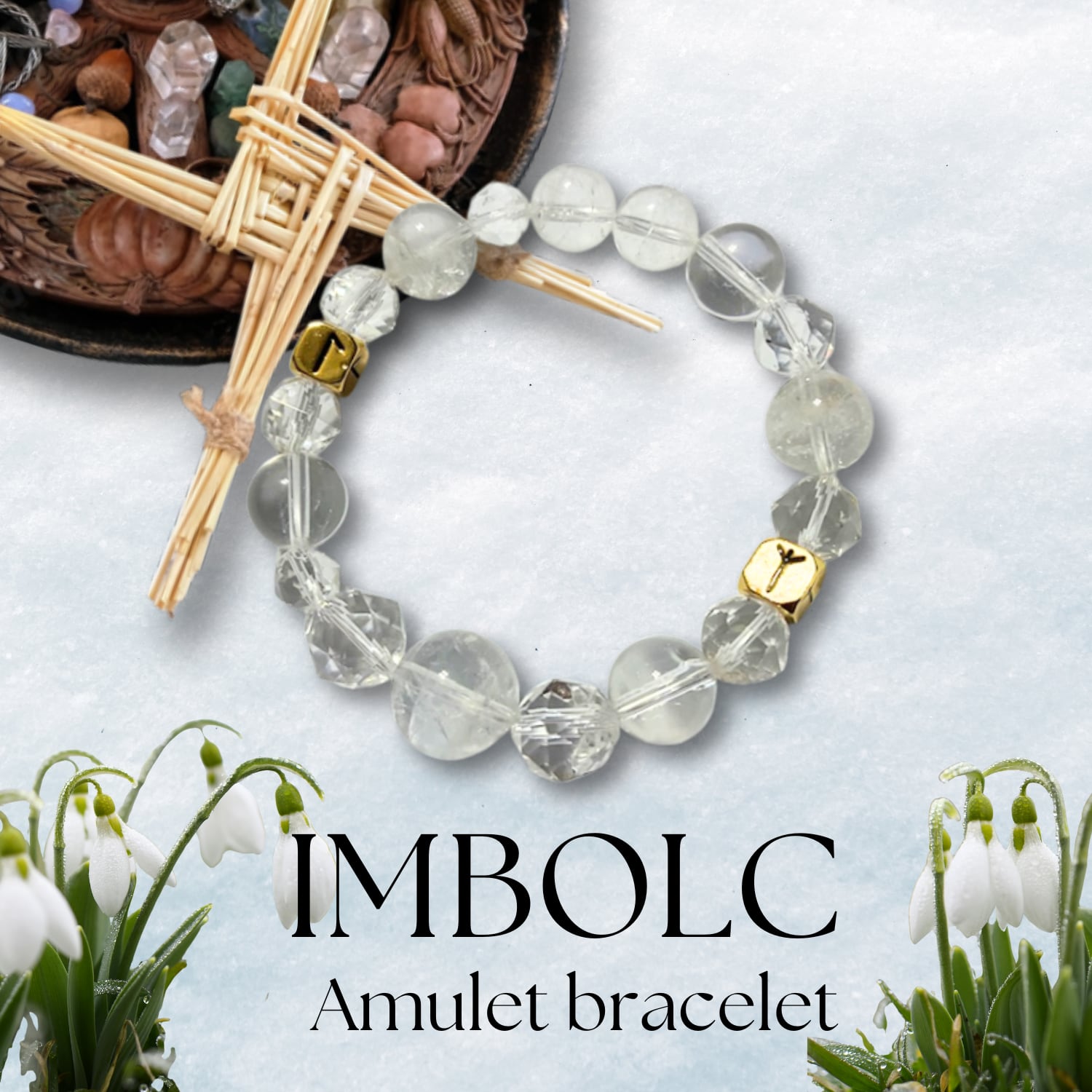 Wheel of the yearのインボルクをモチーフにしたオリジナルの天然石のブレスレットです。