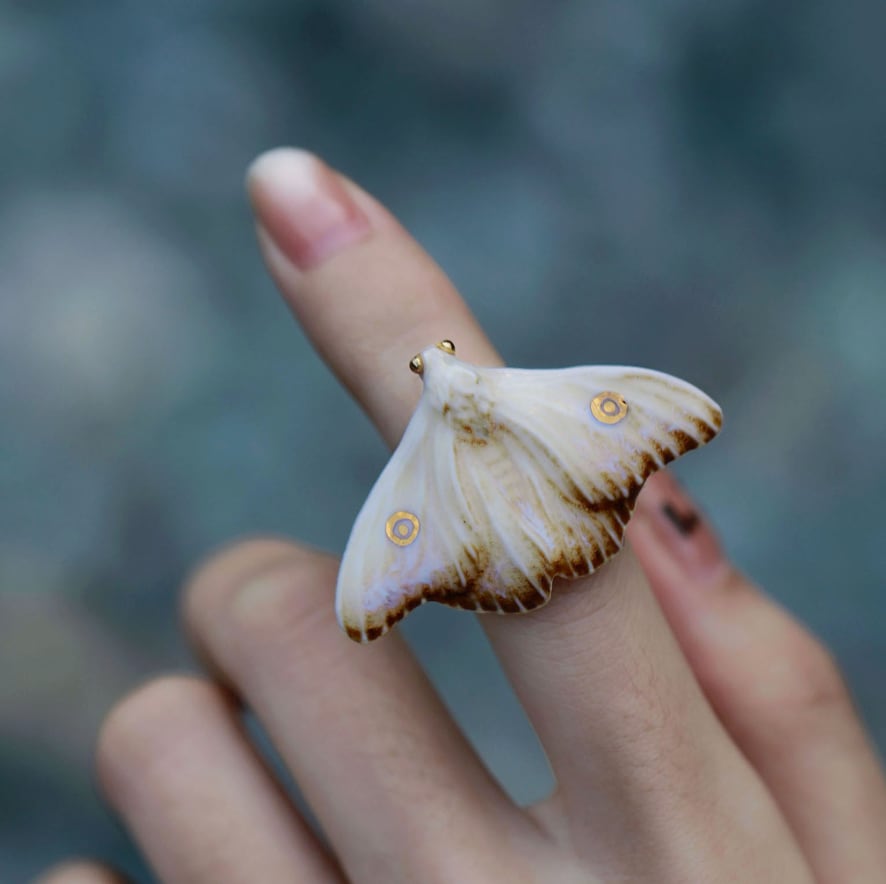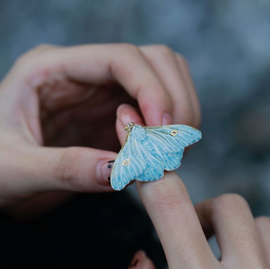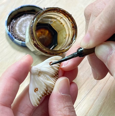職人が一点ずつ手彩色したセラミックの蛾標本。