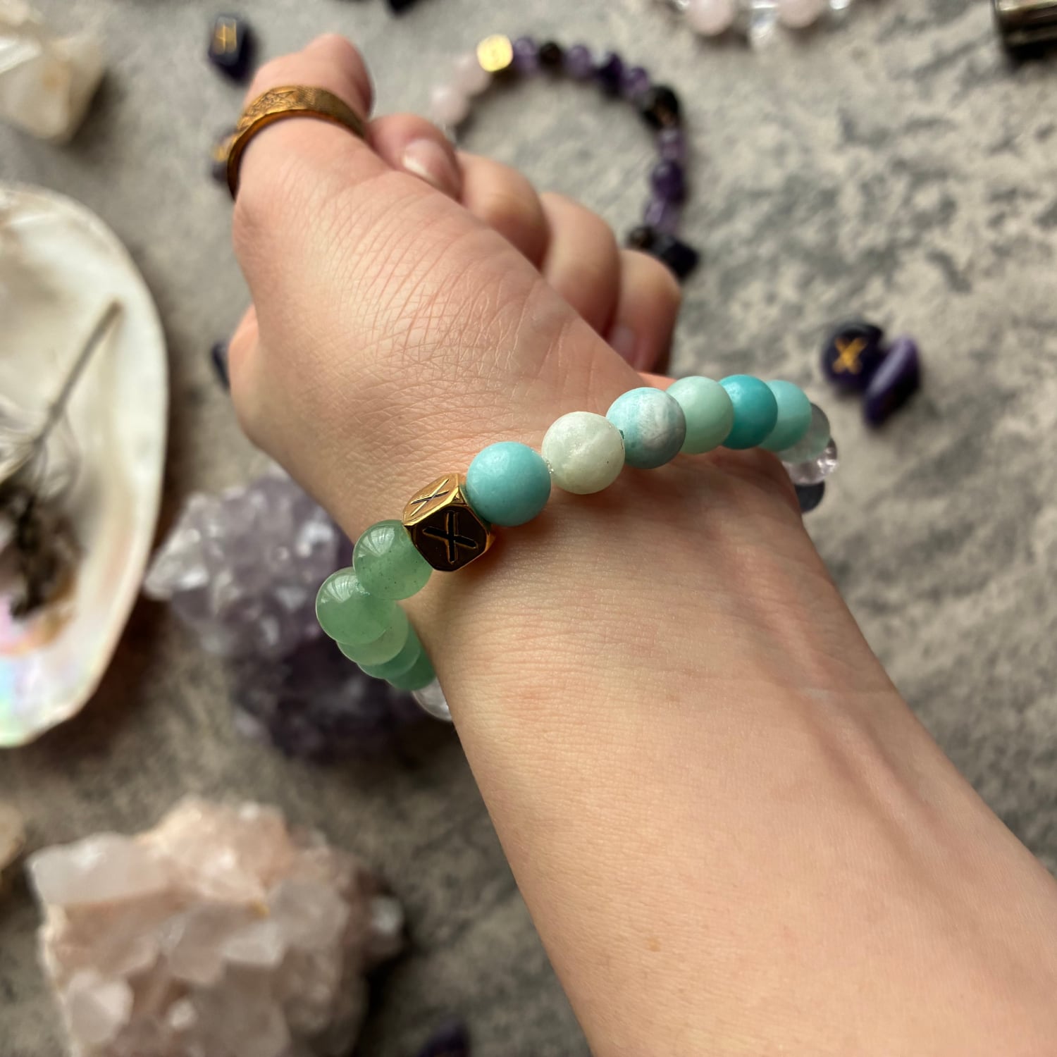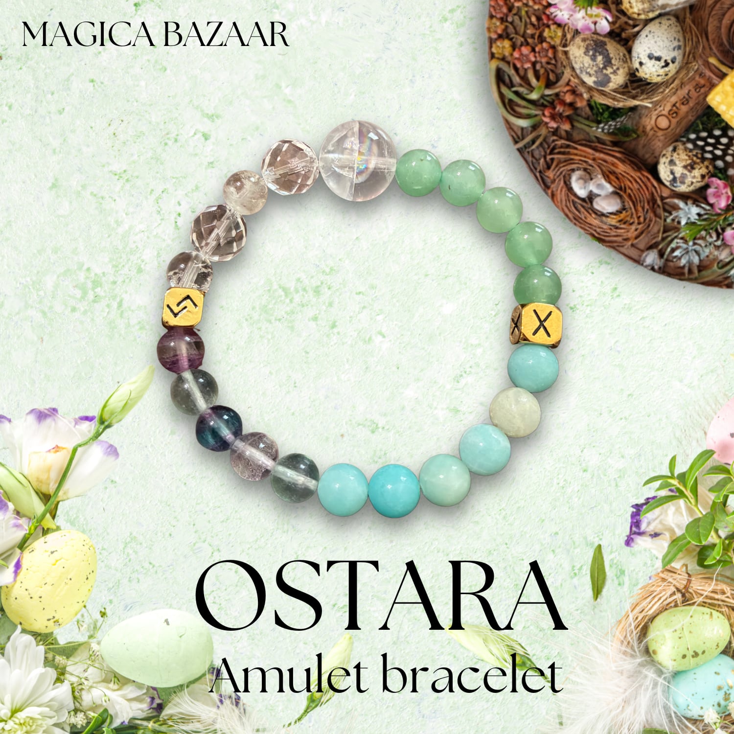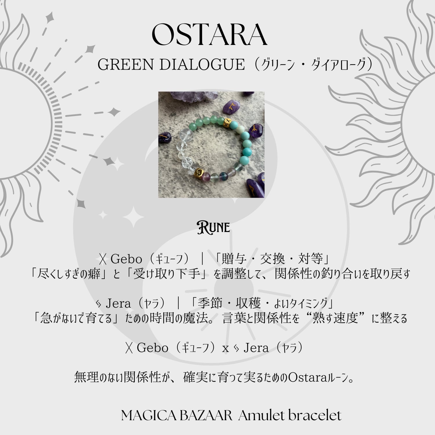 Wheel of the yearのオスタラをモチーフにしたオリジナルの天然石のブレスレットです。