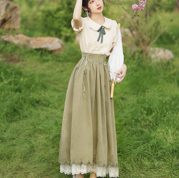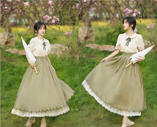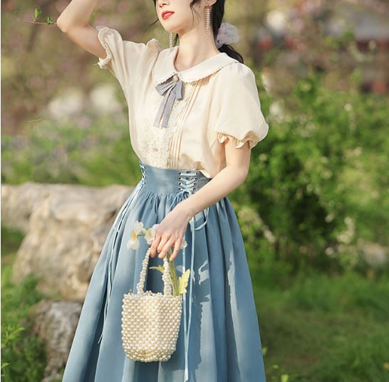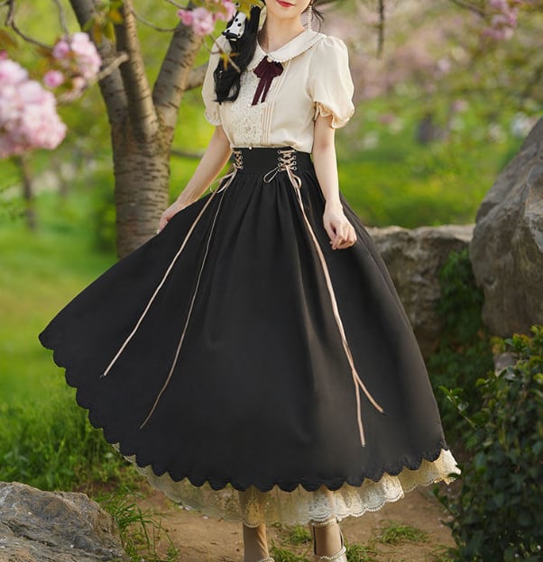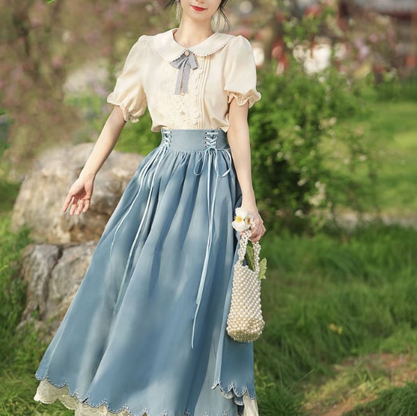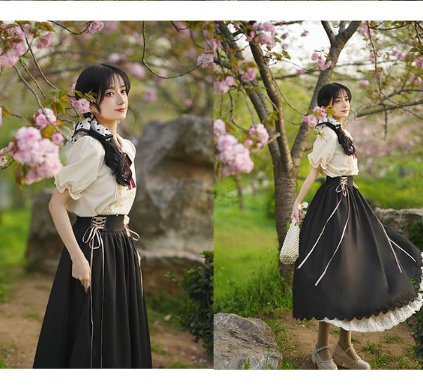 Once upon a time〜おとぎ話のコルセットスカート&ブラウスセットⅡ 半袖〜 M25207 おとぎ話の主人公になった気分になれるシリーズ♥ ウエスト後部がゴムで履き心地楽ちんのコルセットスカート&半袖ブラウスのセット 中にレースのペチコートが入っていてクラシカルなムードたっぷりのデザインです。 ※ブラウスのリボンの飾りは仕様が変更する場合があります 【サイズ】※海外製品につき3-4センチ程度誤差がある場合がございます。 ※モデル 身長158㎝ Sサイズ着用 (ブラウス) XSサイズ バスト約84㎝ 袖丈約20㎝ 着丈約60㎝ Sサイズ バスト約88㎝ 袖丈約20㎝ 着丈約61㎝ Mサイズ バスト約92㎝ 袖丈約22cm 着丈約62㎝ Lサイズ バスト約96㎝ 袖丈約22㎝ 着丈約63㎝ XLサイズ バスト約98㎝ 袖丈約24㎝ 着丈約64㎝ (スカート) XSサイズ ウエスト約68-72㎝ 着丈約85㎝ 裾まわり約280㎝ Sサイズ ウエスト約72-76㎝ 着丈約85㎝ 裾まわり約280㎝ Mサイズ ウエスト約76-80㎝ 着丈約86㎝ 裾まわり約280㎝ Lサイズ ウエスト約80-84㎝ 着丈約87㎝ 裾まわり約280㎝ XLサイズ ウエスト約84-88㎝ 着丈約88㎝ 裾まわり約280㎝ 【素材】ポリエステル 【カラー】 Purple Khaki Witch Black Blue AKAZUKIN Red 不定期でクーポン配布♪奇妙な洋装雑貨店 Magica Bazaar インスタグラム @magica_bazaar Follow me♡ https://www.instagram.com/magica_bazaar/ ↓ファンタジーと現実が混ざり合った不思議なアイテムをもっと見る https://www.magica-bazaar.com/ 【お届けについて】 こちらの商品は海外店舗より直接発送となる為、(一部国内発送あり) ご入金から2−4週間前後で発送致します。 (倉庫の都合により、4−6週間かかる場合もございます。) ◼️注意事項 ・タイミングによっては 商品在庫切れにより 注文キャンセルとさせていただく恐れもございますので、予めご了承くださいませ。 ※製造過程の中で匂いが強く出やすいものもございます。 着用前に一度お洗濯することをオススメしています。 ・こちらは輸入品となります。日本製とは検品基準が異なる為、新品未使用品でもごくわずかな傷やほつれ等がある場合もございます。 ・仕入れ工場を変えることがあるため、記載サイズと若干異なる場合がございます。 ・商品の色味は、お手持ちのスマートフォンの画面によって実物と若干異なる場合がございます。 ・イメージ違いやサイズ交換等、お客さまご都合による交換、返品は対応出来かねます。 ・著しく縮む恐れがありますのでタンブラー乾燥はお避け下さい。 ———————————— ご購入前にこちらをお読みください →https://www.magica-bazaar.com/blog/2021/09/29/005357 ———————————— 管理番号:M22038 お取り寄せまでに少々お時間を頂戴いたしますので、皆様にご安心してご利用いただけるように 誠心誠意対応させていただきます。ご質問などはお気軽に♡