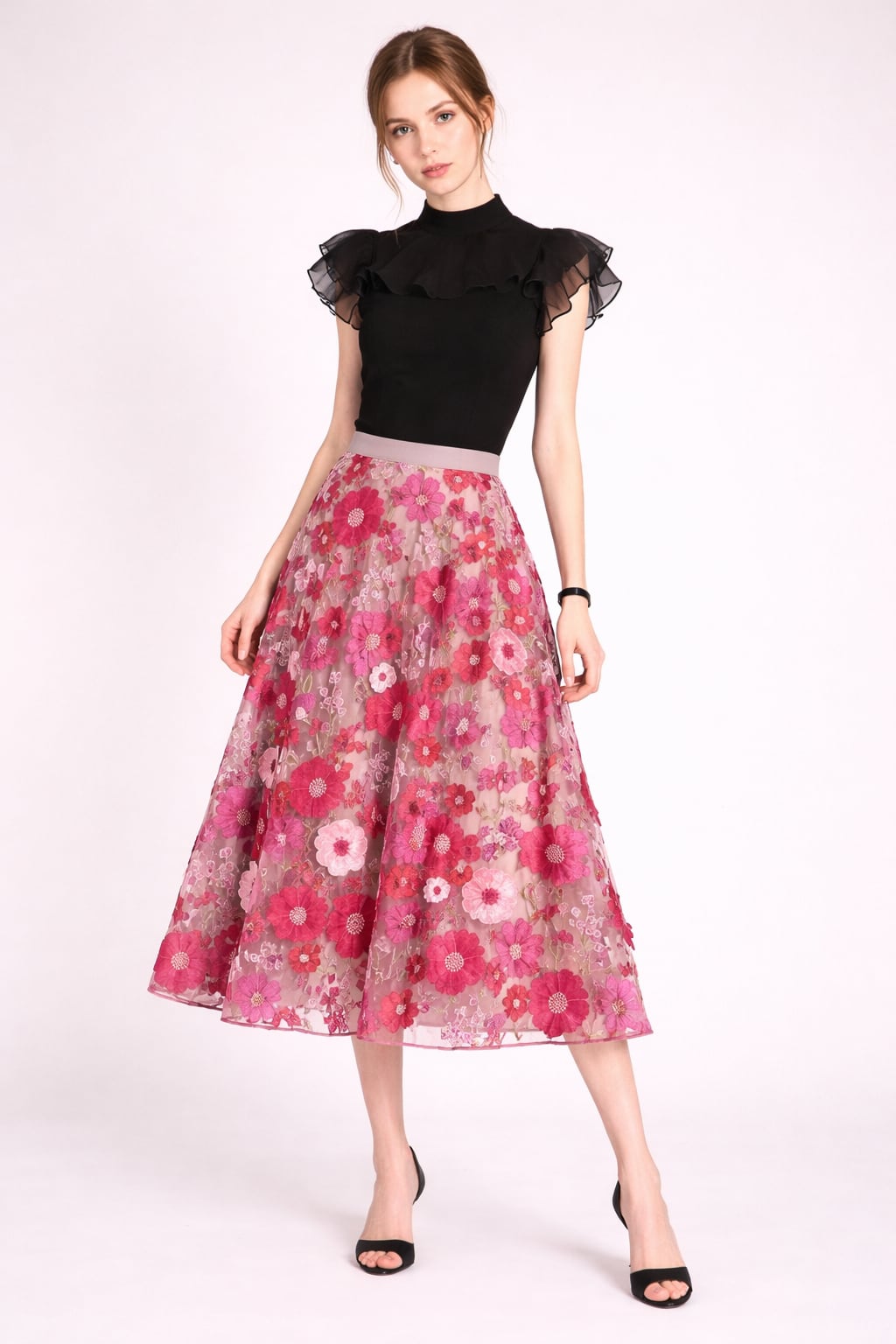 ブラッシュ・ペタル フラワー刺繍スカート M25177