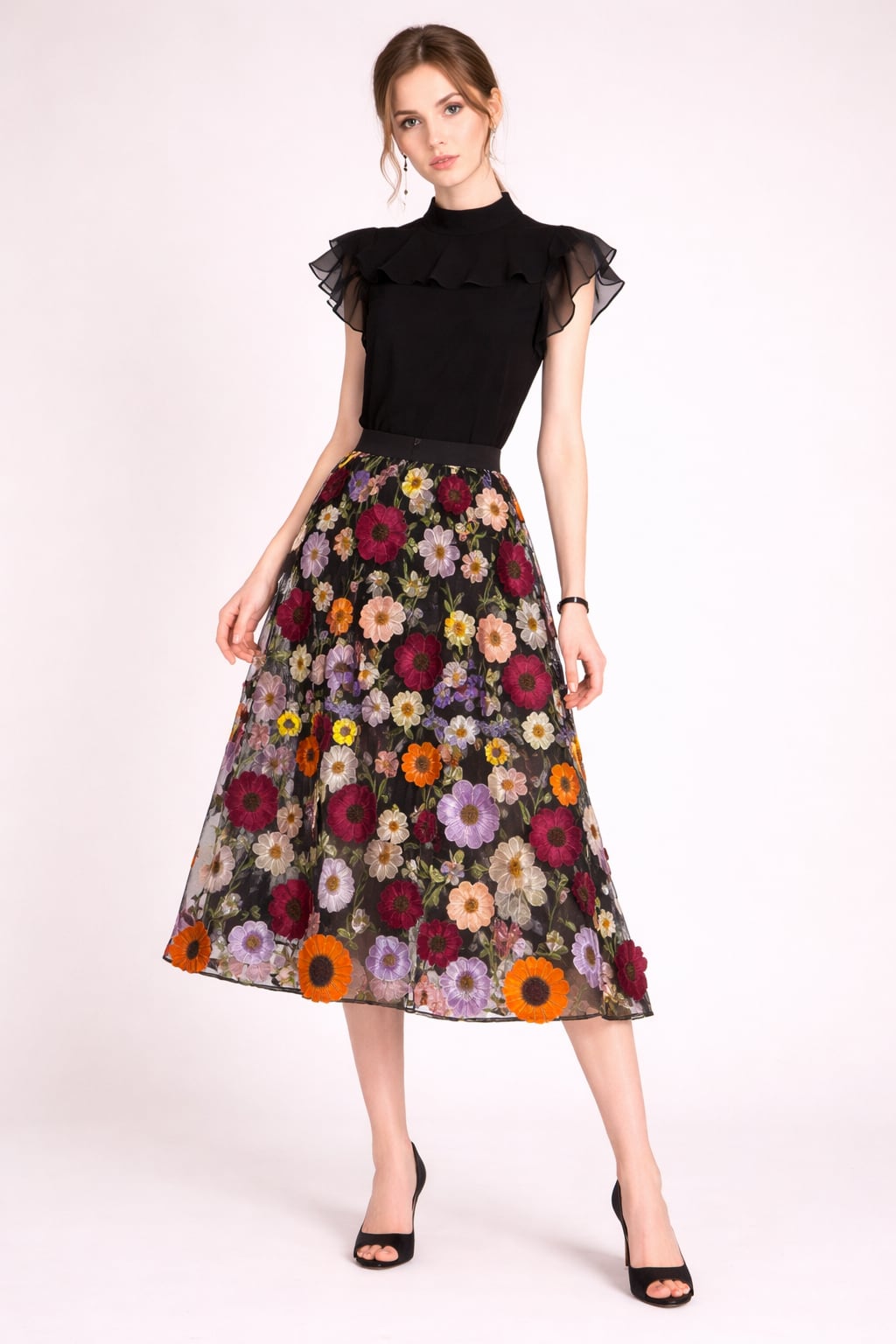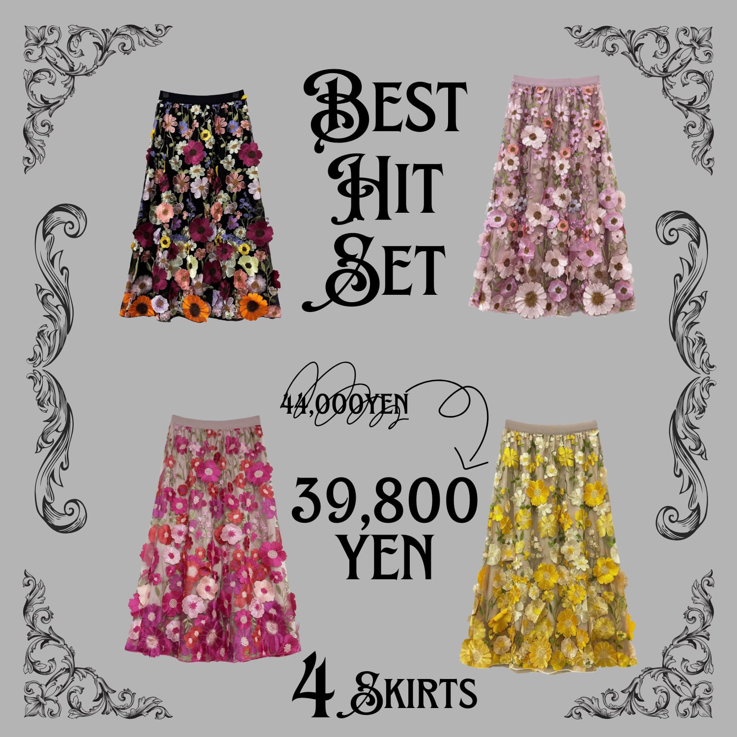 Best Hit 4点セット ブラッシュ・ペタル フラワー刺繍スカート M25177